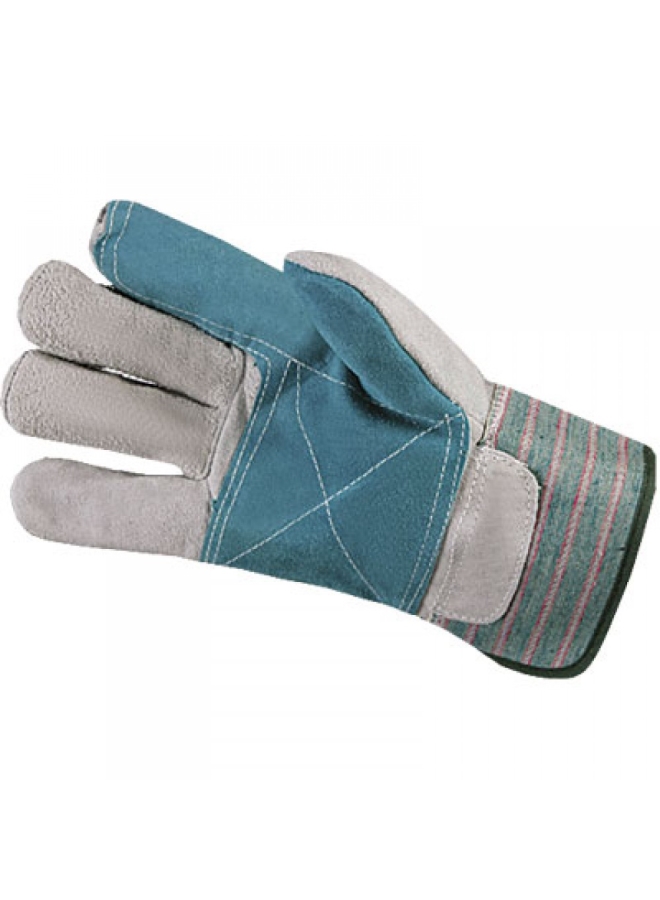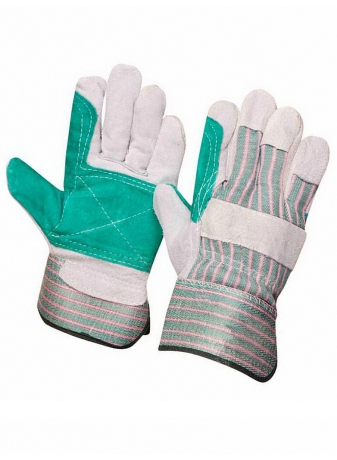 Спилок натуральной кожи сорта ВС мягкий, плотный, толщина 1,3+/-2 мм. На ладонной части и пальцах усиление дополнительным слоем кожи, прошиты прочными двойными швами.